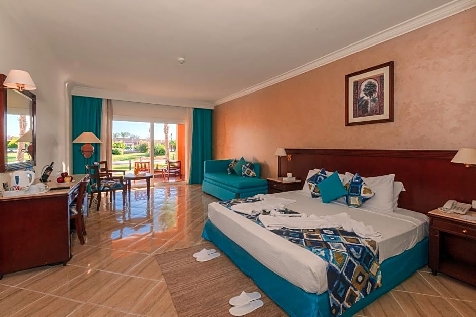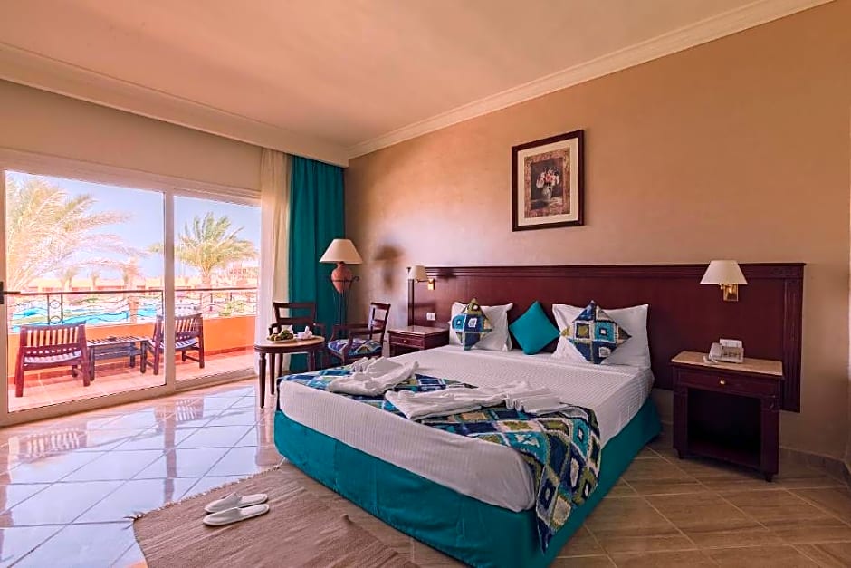 Standard Double Garden or Pool View is 377 square feet and includes a double bed 131-150 width plus balcony, hairdryer, and safe and is Wheelchair-accessible.